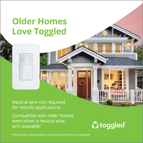 Toggled® (120-277 VAC) single-gang motion sensor switch automatically controls lighting or fan loads by responding to occupancy or vacancy within a room. It’s designed to seamlessly replace a traditional mechanical light switch. Ideal for quick retrofits.
